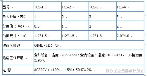 TCS-4型緩沖式電子平臺限定稱重范圍是5噸,稱重分度值為2公斤,臺面尺寸2.0x4.0米,采用的是OIML(III)標準等級;