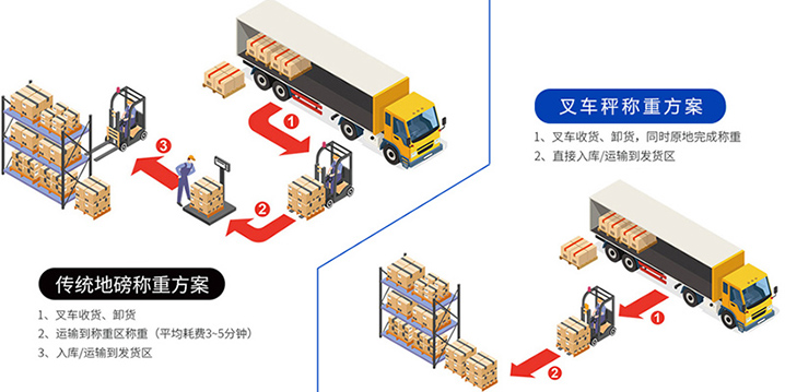 重量測量在商品和原材料的供應中非常重要。在物流園區、生產車間、倉儲場所等區域,常常能看到叉車忙碌的身影。在叉車搬運、堆垛貨物過程中,貨物的重量具有很重要的意義。通常叉車會將貨物搬運到地磅或臺秤上,進行計量稱重后,再搬運至其他位置,這樣的稱重方式雖精確,卻效率不高。